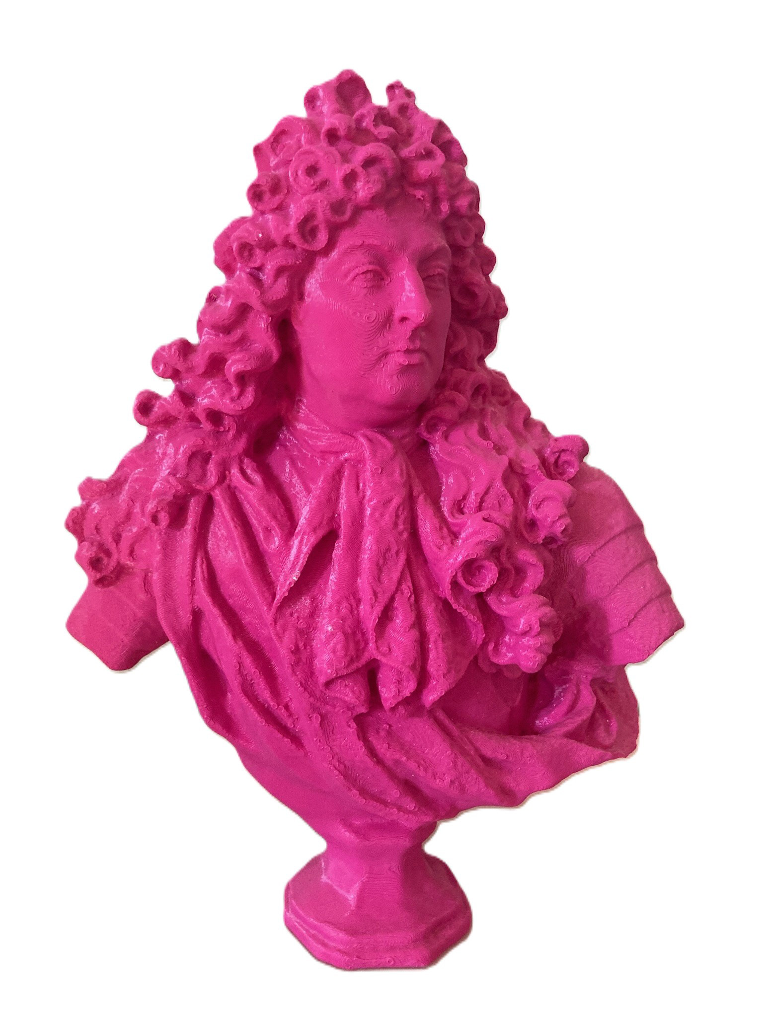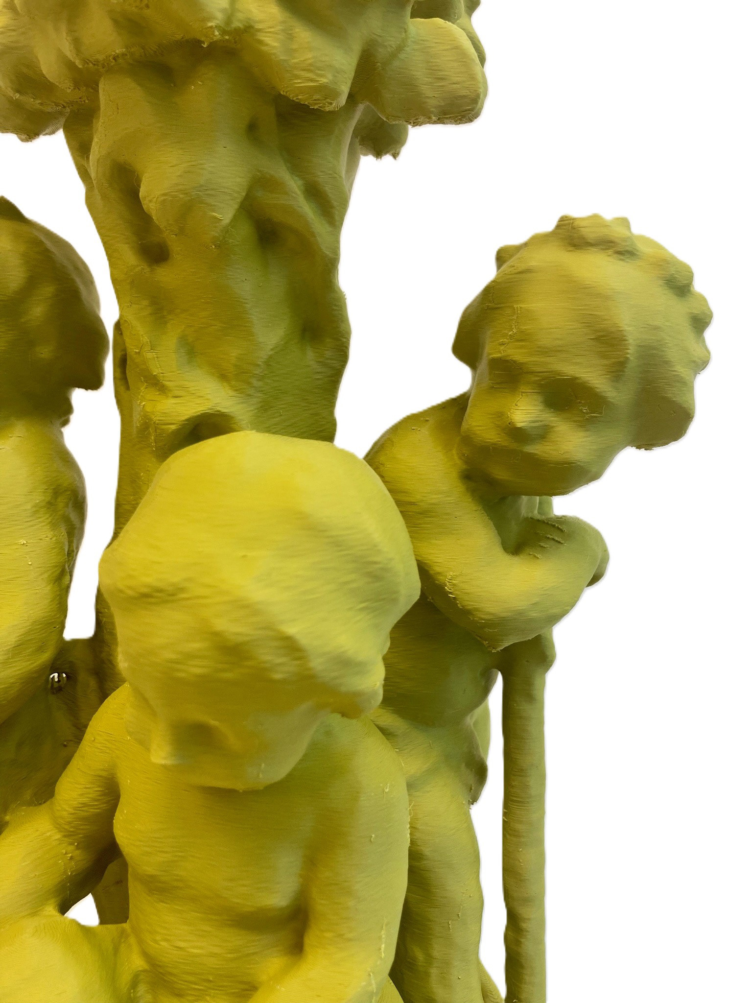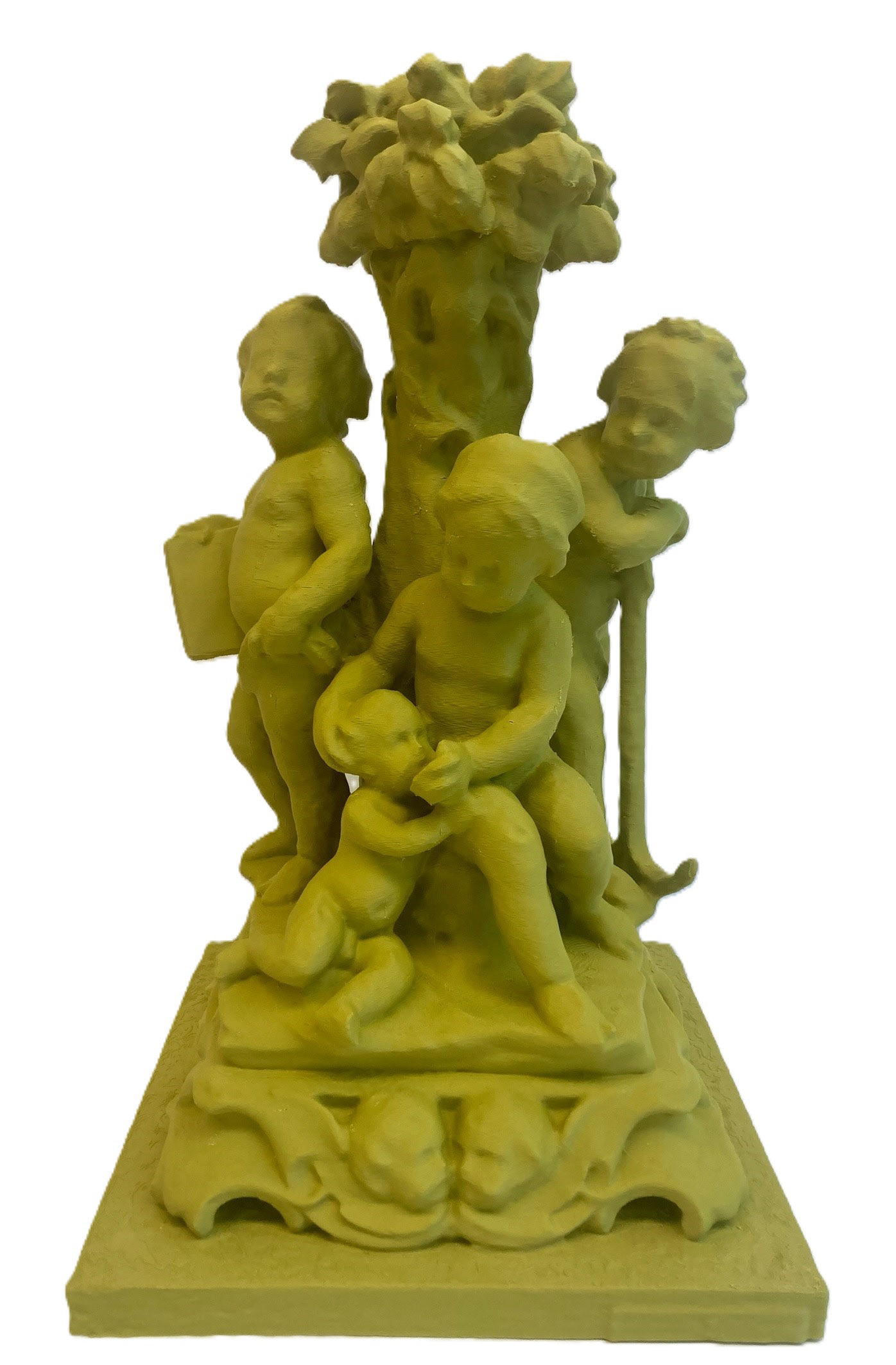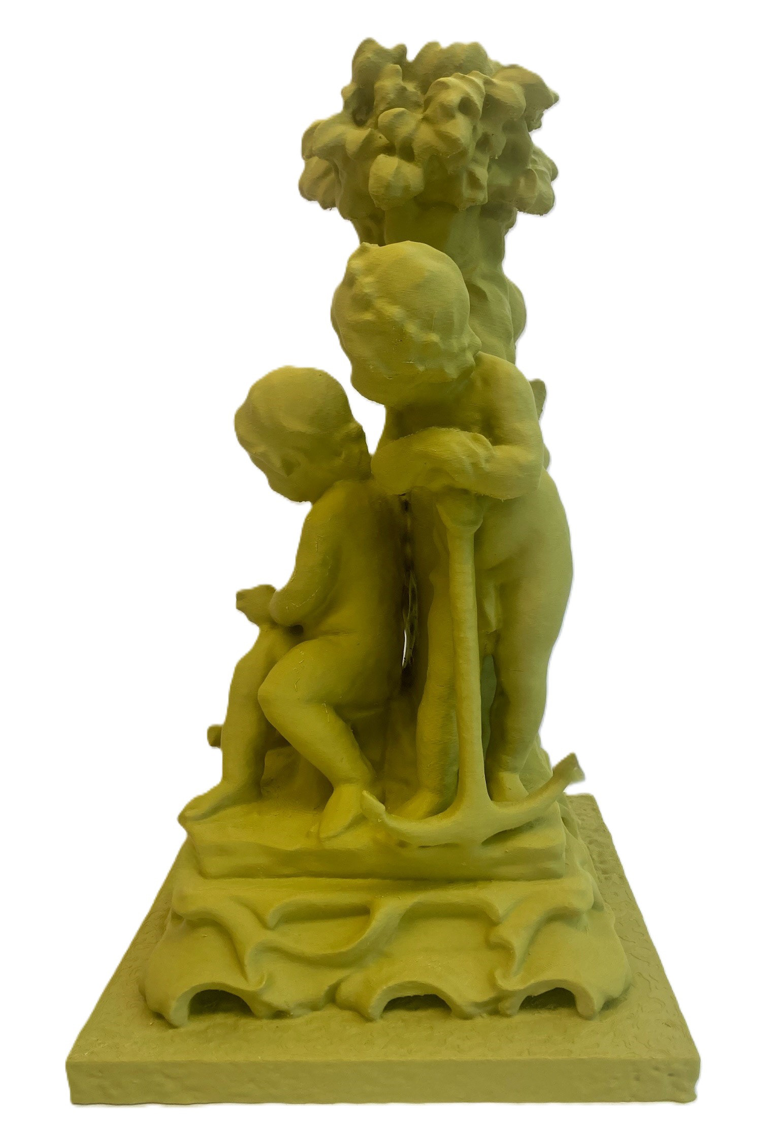 Together, the works in Cheap Opulence explore shifting ideas of value, access, and authorship. In 3D printed form, these artifacts might seem to outlast us, yet their biodegradable nature ensures they decompose like flesh. Their historical weight is undercut by infinite replicability. Once removed from their original sources, they become something else entirely. These miniatures lean into camp and whimsical excess, transforming historical fragments into playful performers on a global stage that begins right here in Columbus, Indiana.