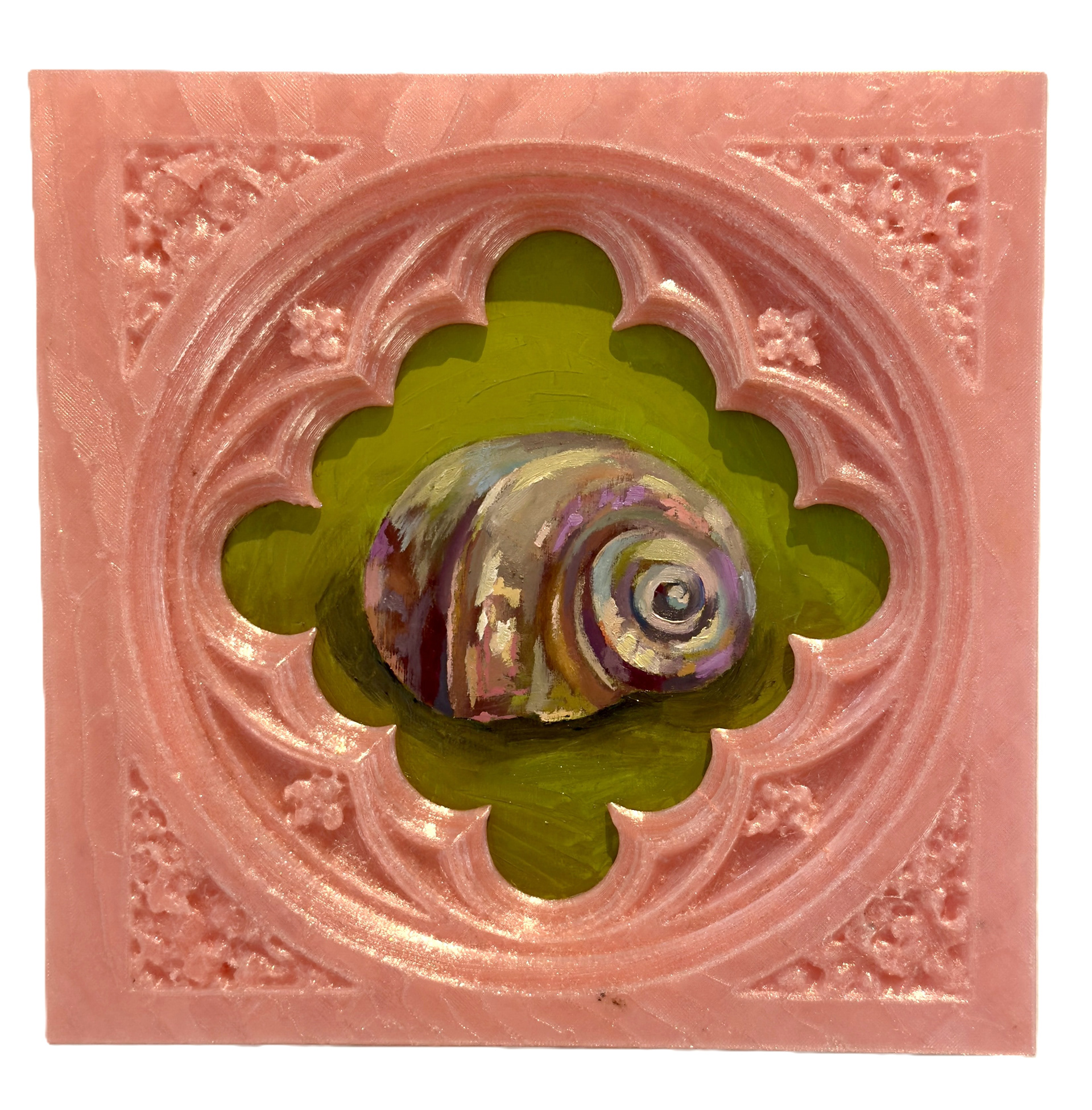 Cheap Opulence reimagines historical artifacts through a shared fascination with ornamentation, excess, and transformation. Painter Sara Yourist and sculptor Ana Meza bring digitally scanned fragments of architectural facades and historical ornament into a new space where the sacred becomes theatrical and the decorative becomes distorted.