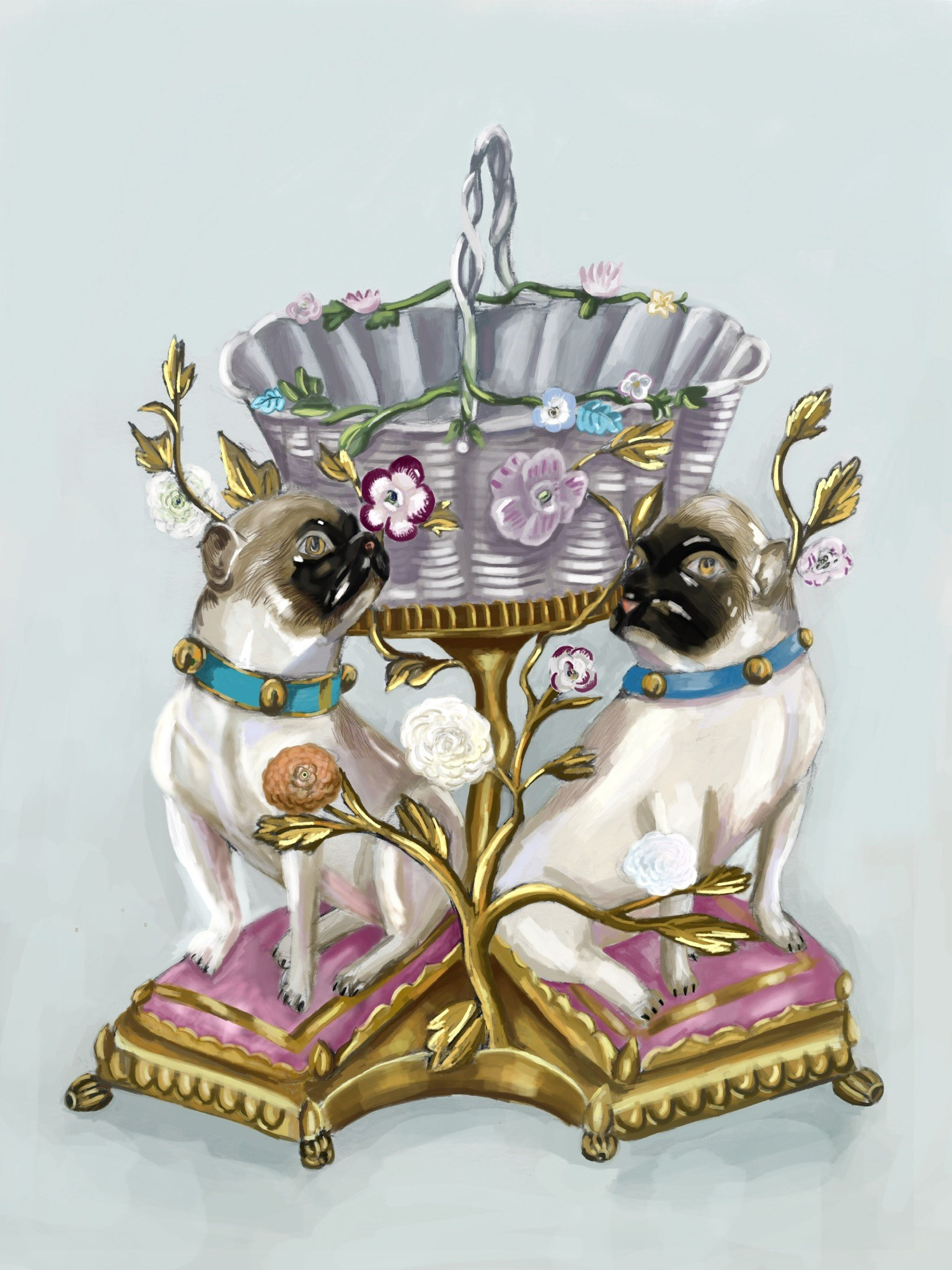 Meissen Porcelain Pugs. Digitally Painted on Phone using Brushes Redux. 2020.